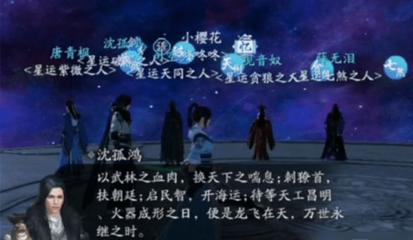 我的星运相似之人是沈孤鸿,同为破军星命。以天下为念,行侠义之事。沈孤鸿心中有如此愿景:以武林之血肉,换天下之喘息;刺獠首,扶朝廷;启民智,开海运;待等天工昌明,火器成形之日,便是龙飞在天,万世永继之时。
