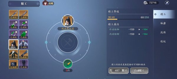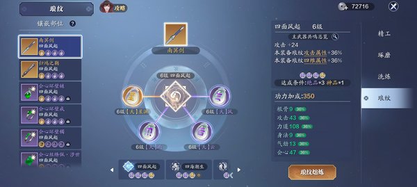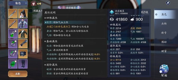 洗练,可以洗出各种属性,力道会心主要来源之一,每周点券诸神令买满,前期控制在10-14级即可,18级之后可以洗出破招拆招属性,pvp最重要属性之一,有条件必须整。