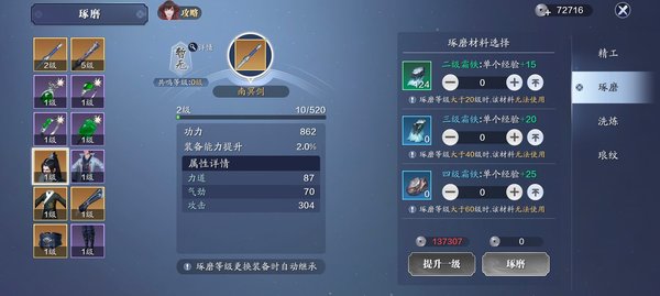琢磨,直接提升装备属性,可继承,但是二级材料还能用到的时候尽量不要点,加的属性不多。