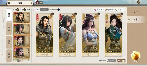 上阵四个,助战五个,一些玩法会需要伙伴上阵,总体来说伙伴也是加属性提战力的