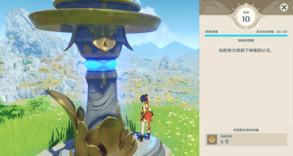 开启任务的前期条件,就是将岩神像升到10级,也就是说要把岩神瞳全部收集完。