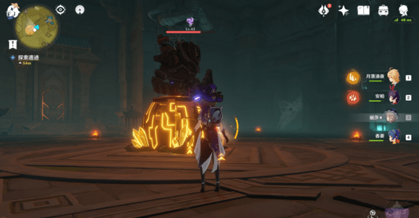 进入遗迹会刷三波怪,第一波是遗迹守卫,好打,血量降低至一定程度会被魔石强化,用元素技能打破石头即可解除强化状态,后面两波怪同理,我用的岩主,一个E就能打破魔石,其他没试过。