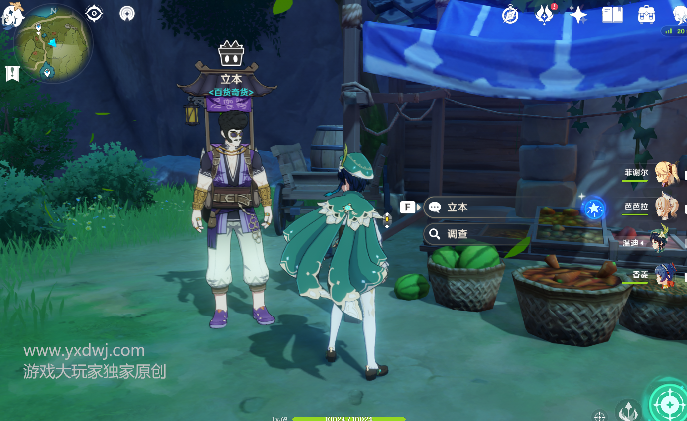 玩家沿着风车旁边的那条路一直往里走,就能够在一个杂货摊旁边找到NPC立本了。