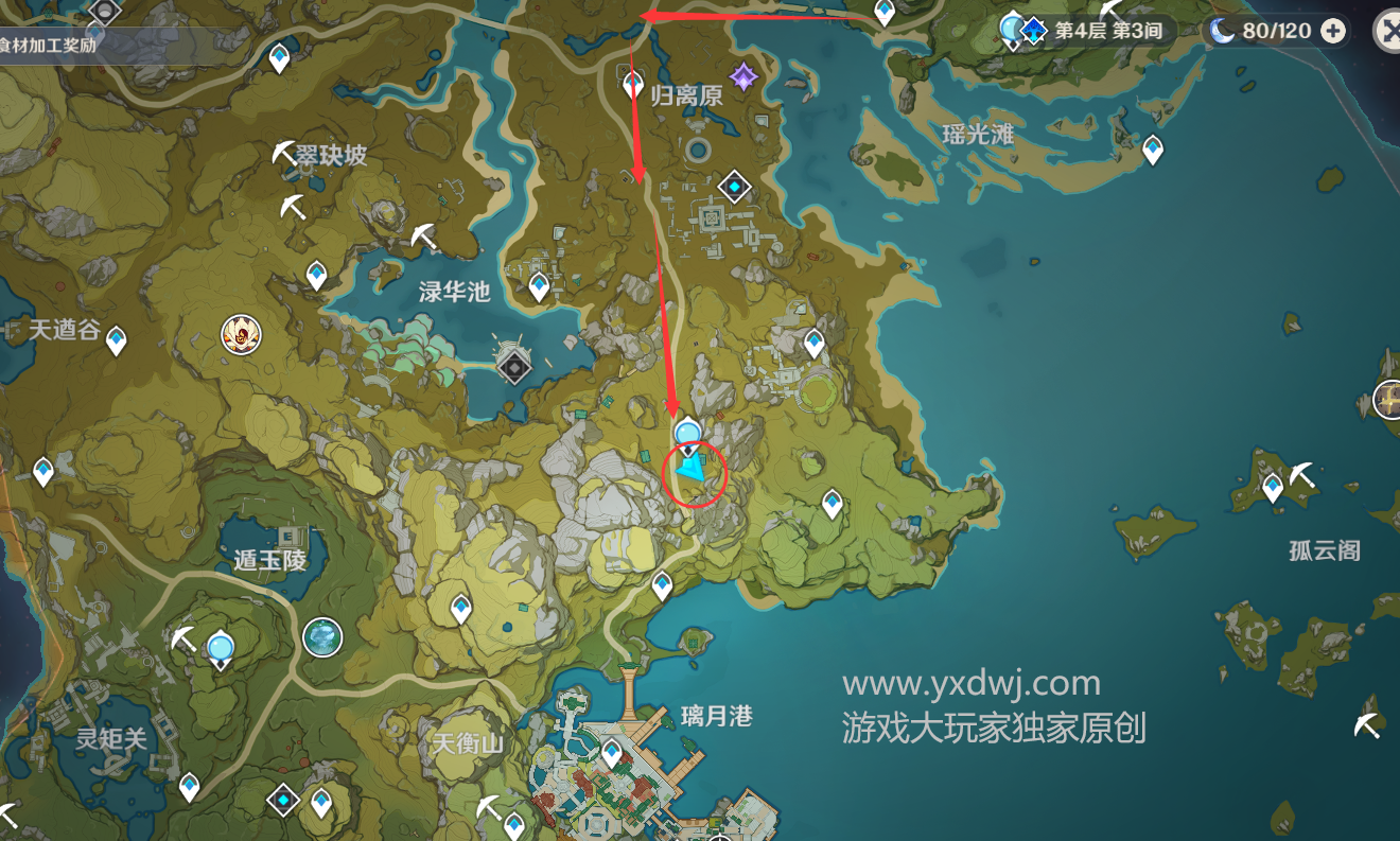 璃月港北边七天神像地图