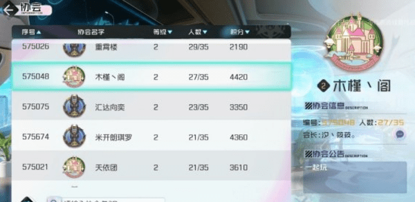 全部协会:点击即可查看游戏内的协会列表