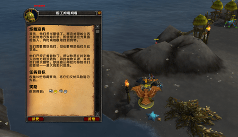 3.国王会给你个任务,让你去初次与鱼人见面的地方收集螃蟹肉,建议坐标就在风险湾附近,主要玩家打螃蟹时要尽可能打那些看上去肉多的胖一点的,任务是在水下区域进行,注意自己的呼吸条和疲倦条,亡灵种族、德鲁伊、SS可以忽略。收集完成之后直接去17,93的海底交任务。