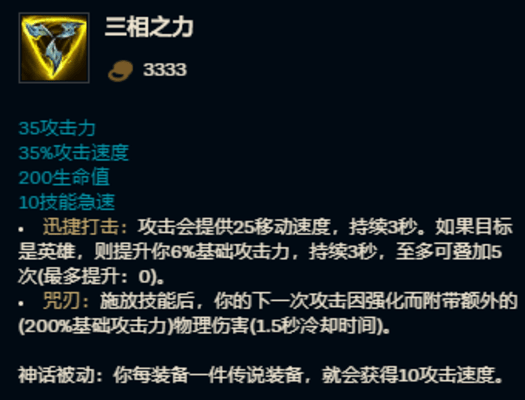 但是,现在三相便宜了,能增加最多百分之三十的基础攻击力,还送了个神话被动。