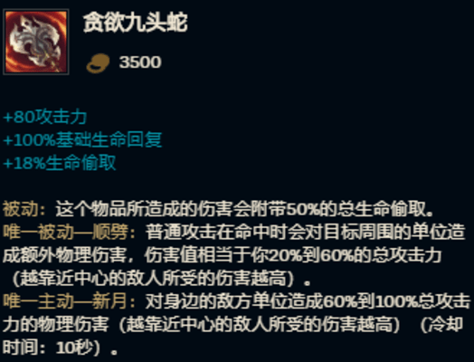 比如,现在的贪欲九头蛇没有了生命回复,也没有了主动技能,吸血还少了。