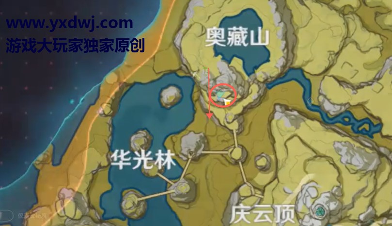 小编在这里给大家找到的位置是位于奥藏山和华光林之中的区域。