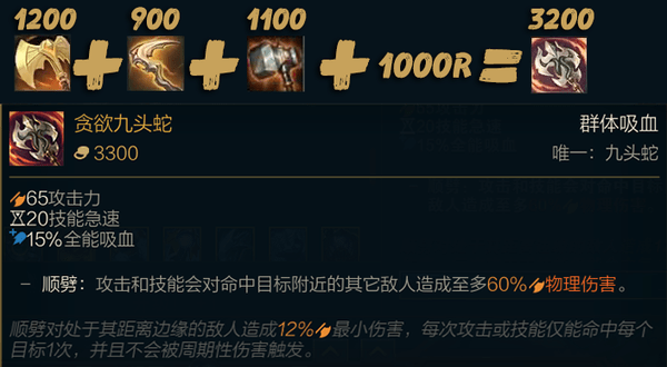 提亚马特是必须要出的,不仅可以在团战中配合猴子的Q打出高额的aoe伤害,在带线中进行清线也可以大大的提高你的速度,让你可以快速清完线去游走或者参团。