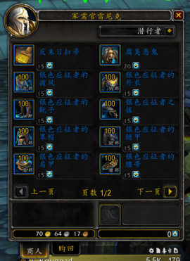 其中联盟的军需官是雷尼克,坐标为65.4,77.0,部落的军需官为恩格伦,坐标是53.0,76.8,可兑换物品如下