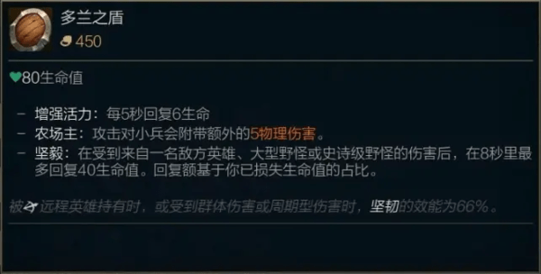 多兰盾可以说时没有任何的改动还是和以前一样,大一些比较频繁上来消耗磨血的英雄依然第一推荐:卡密尔,武器,鳄鱼以及各种长手类上单。
