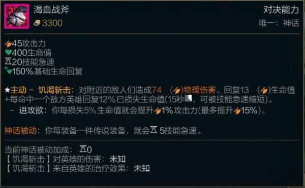 接下来就要讲一下S11的个人认为的剑魔核心装备了,渴血战俘,这装备可以说是剑魔必出装备。