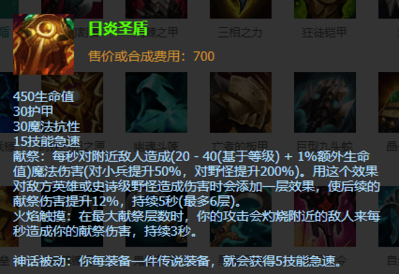 木木中期核心推荐做出水银鞋,如果想打的有效率一点可以考虑出五速鞋,现在的木木基本都是出以"日炎圣盾"作为神话装备的体系,做出日炎以后每装备一件传说装备还可以获得5技能急速,让木木这个依赖技能的英雄释放技能效率更高,恶魔之拥可以造成百分比伤害。