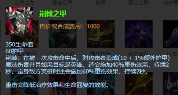 木木后期神装的选择,在中期核心的基础上可以进一步补肉装,如果对手的AD比较强一定要出一件反甲,在10.23版本的反甲非常契合木木,木木的Q的定身跟反甲完美契合,如果缺输出就后期再补一件输出装,如果团队缺坦度就再补坦系装备,让木木更肉一点。