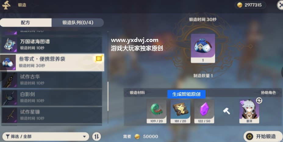 然后拉到最下面,我们可以发现我们的叄零式·便携营养袋的锻造列表。