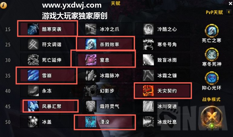 推荐酷寒突袭,省事,不需要太多操作,追求极限DPS可冷酷之心,冰爪天赋前期不推荐,后期天赋可能可用。