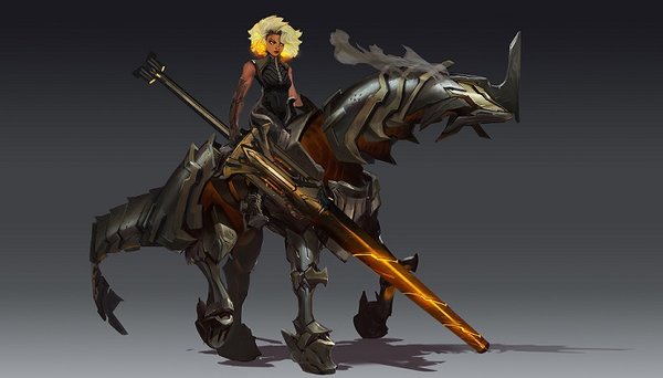 (只能在步行时施放)芮尔向前冲刺,并将她的铠甲变为一匹坐骑,获得爆发性的移动速度加成。下一次攻击时,芮尔会朝目标冲锋以造成额外伤害并将敌人挑至自己身后。 芮尔在骑乘状态下可以提升移动速度。在变形后,这个技能会被更换为W1。