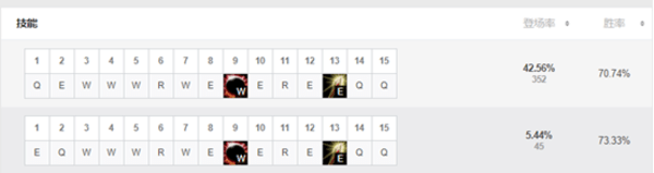 Q升级不减冷却,所以一般是主W副E,来要前期高等级W提供的坦度和伤害。