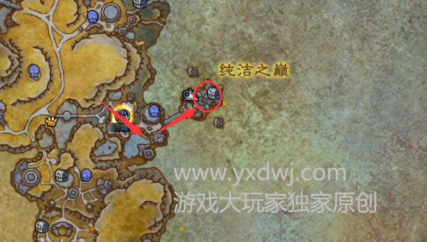 我们按照下图红圈里面的位置,纯洁之巅最上面,一直往前走就可以找到了。