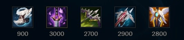 破甲装备可以以幽梦代替锋刃,两件轻语类型的装备由于价格更加便宜,成型更快可以更来代替赛瑞尔达。