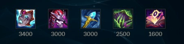 多兰戒出门,先做出大面具,新版大面具强化了输出不再提供血量,而这完美契合缺输出的玛尔扎哈,第二件做出恶魔之拥,相当于两个面具一起打持续伤害。再做出冰杖与鬼书,提供减速和重伤效果,比较顺的话可以出杀人书,玛尔扎哈是支援型中单,叠杀人书很快。