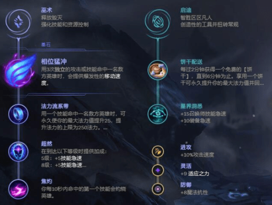 基石符文选择相位猛冲,搭配法力流系带、超然和焦灼,副系则是饼干配送与星界洞悉。