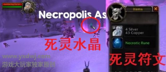 我们只要在下图所示绿色的水晶周围杀怪,就可以收集死灵符文了。