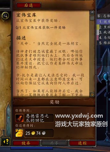 任务之中需要我们从宏伟宝库之中获取一件奖励。