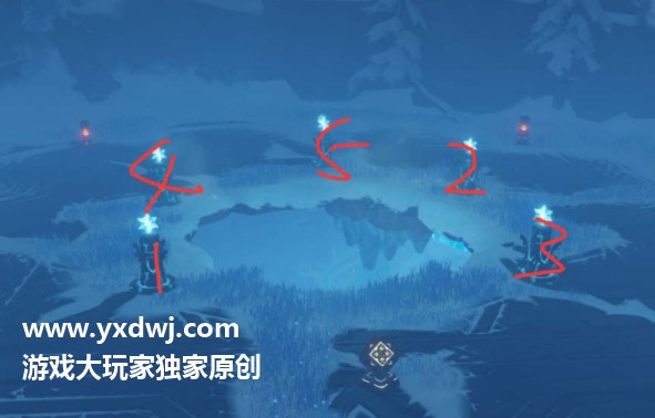 但我也发出来吧 是顺序12345 用冰属性点亮就好了。
