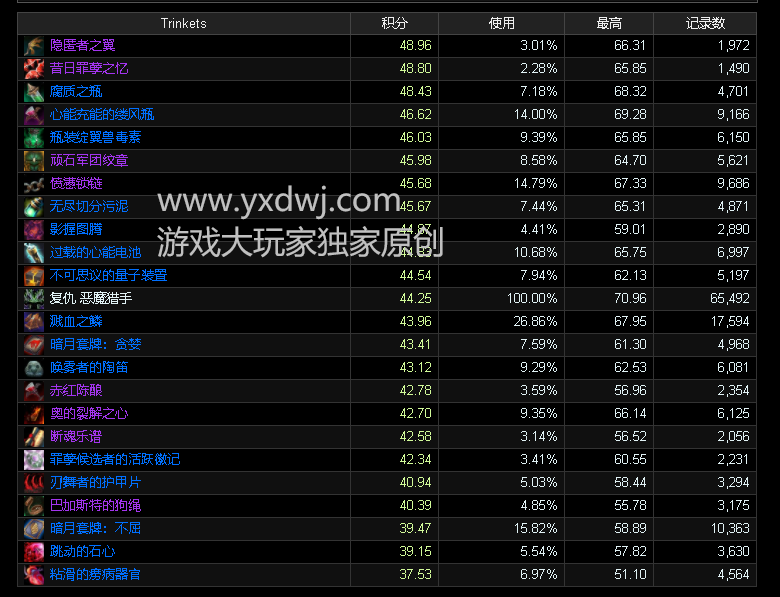 DHT魔兽世界9.0饰品排行