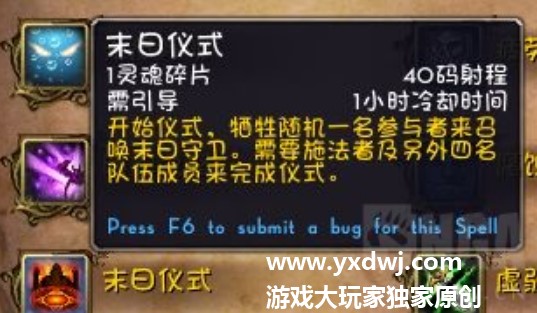末日仪式是一个术士的特殊技能,技能CD一小时。