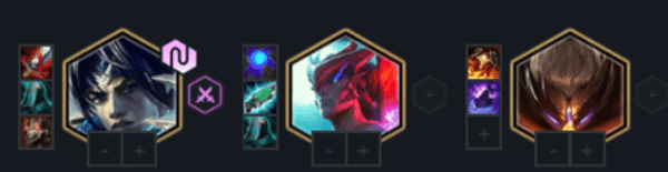 蔚、沙皇和赵信组成了3三国猛将羁绊,给赵信提升生命值和法术强度,蔚的技能可以降低敌人的护甲,而决斗大师英雄的输出也是主要以物理伤害为主,蔚在永恩到来之前对队友的伤害提升很大,沙皇的枭雄羁绊适合单挂,部署的2个沙兵还可以保护一下后排的滑板鞋。永恩是后期的重要输出,与亚索组成了2浪人羁绊,永恩的技能可以降低敌人双抗。