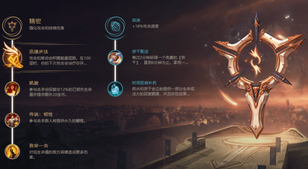 基石符文可以点强攻也可以点征服者,对方的阵容偏肉时就点征服者,打脆皮需要一套爆发直接秒掉就点强攻。