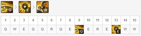 主Q副E,Q技能兼具推线爆发于一体,E技能格挡伤害的同时还能够加入连招叠被动。如果对线的是维克托、佐伊等长手法师1级点W,贴脸A出强攻。