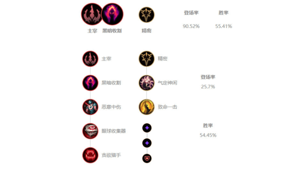 黑暗收割能够为死歌提供高额的额外伤害,尤其是死歌这类斩杀能力极强的英雄,有了黑暗收割配合上死歌的R技能可以瞬间斩杀残血目标。副系建议点出气定神闲与致命一击。