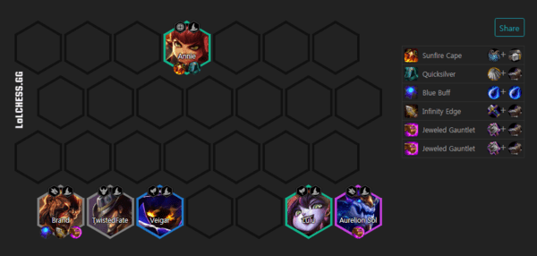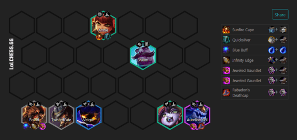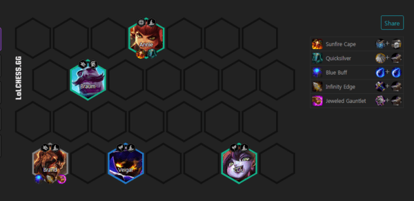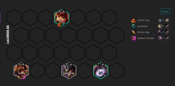 5人口火男、小法、安妮、璐璐、布隆凑5法师羁绊。