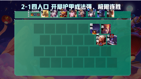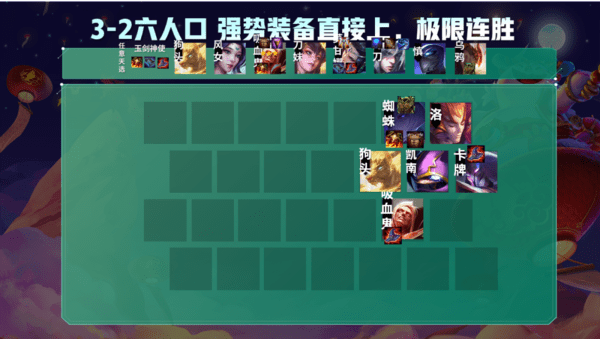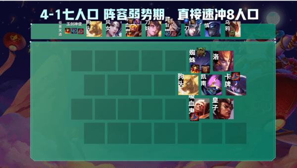 阵容的重点就是直接8人口,阵容完成装备难度特别低,主要缺点就是主C是四费,完成羁绊是五费,如果吸血鬼是个3费,乌鸦是个4费,这基本上就是完美阵容,或者拿到神使的天选,也是可以7人口D到死找三星吸血鬼苟分的,但是阵容完成了之后强度莫名其妙的高
