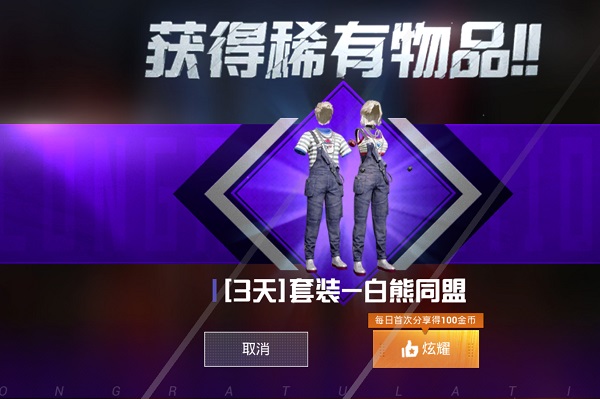 和平营地快速领取白熊同盟套装方法