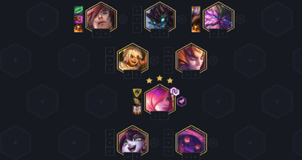 霞是这个阵容的核心输出点。奥恩如果打造出了三相就挂给霞,配合无尽的爆发能力比较强,如果没有三相就尽量合成正义之手。第三件装备一定要给到春哥,增加霞的容错率。