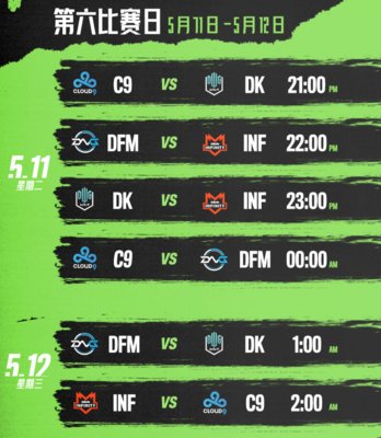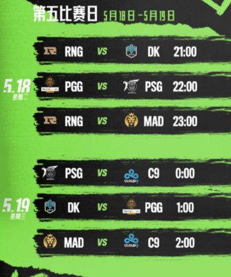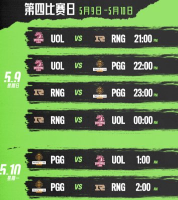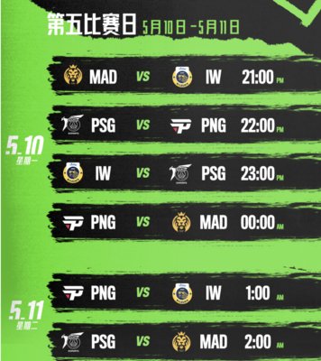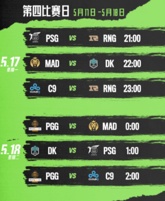 注:第五比赛日当日比赛结束后不会有加赛情况,前四名进行抽签决定半决赛对战情况。