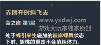 解锁了1命的话可以改变胡桃的输出模式,可以无限释放重击的同时,还能够配合逆飞的流星套装打配合。