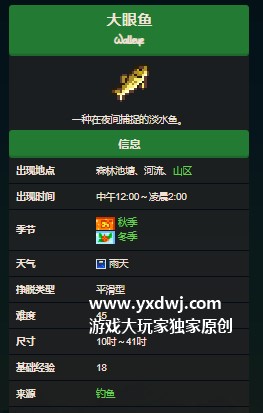 星露谷大眼鱼什么时候可以钓?