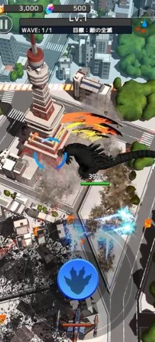 《GODZILLA DESTRUCTION》的玩法偏向与动作破坏类游戏,玩家在游戏中可以操作自己的哥斯拉怪物以俯视视角来进行破坏,不断地摧毁场地关卡中的各类建筑物,获得更多的分数,解锁更多的哥斯拉皮肤和外形。