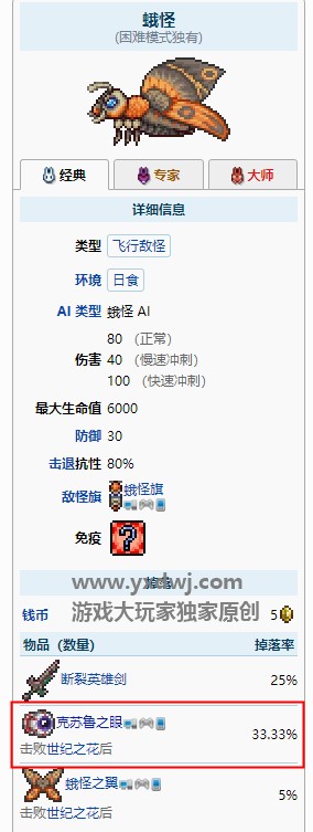 (只有击败了世纪之花之后才会掉落,世纪之花之前蛾怪是不会掉落的!)