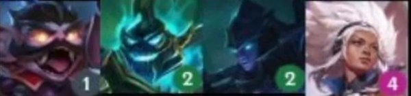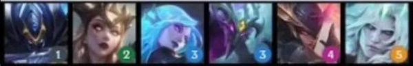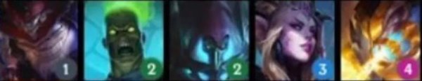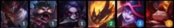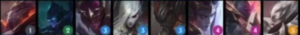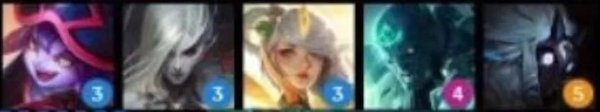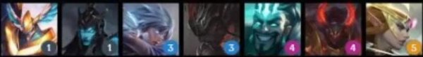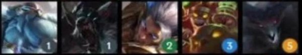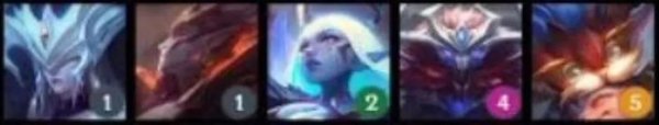 英雄:弗拉基米尔(1),瑟庄妮(2),李青(3),莫甘娜(3),亚索(3),厄斐琉斯(4),黛安娜(4),德莱厄斯(5)