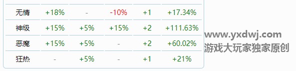 下面四种附魔都是可以用的,就算到不了传奇,我们也可以尽量用下面的几种(无情/神话/恶魔/狂热)代替。