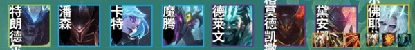 巨魔、潘森、卡特、梦魇、德莱文、莫德凯撒、皎月、破败之王。
