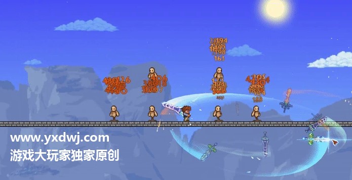 使用天顶剑时,其自身和制作树中的剑(也包括泰拉刃的构成部分)会飞向光标20物块半径以内的敌人,以大弧度运动返回。