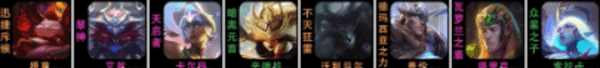 提莫、扇子妈、艾翁、辛德拉、狗熊、盖伦、酒桶、索拉卡、宝石。